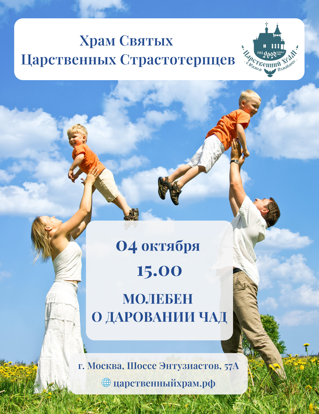 В храме святых Царственных Страстотерпцев в Южном Измайлово состоится молебен о даровании чад и освящение иконы святых праведных Иоакима и Анны.